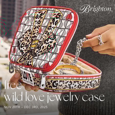 Now through December 3rd, with a single, same-day Brighton purchase of $150 or more, receive our wild love jewelry case FREE!